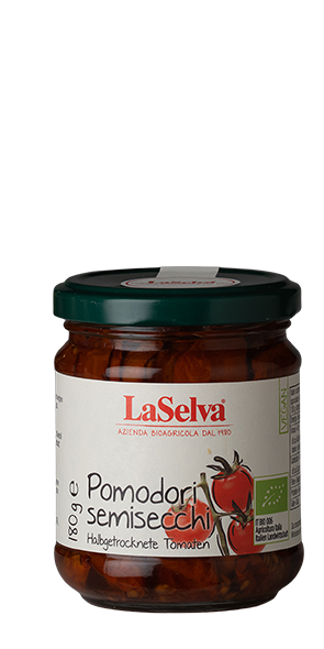 Zutaten: halbgetrocknete Tomaten 56%, natives Olivenöl extra 42%, Meersalz
